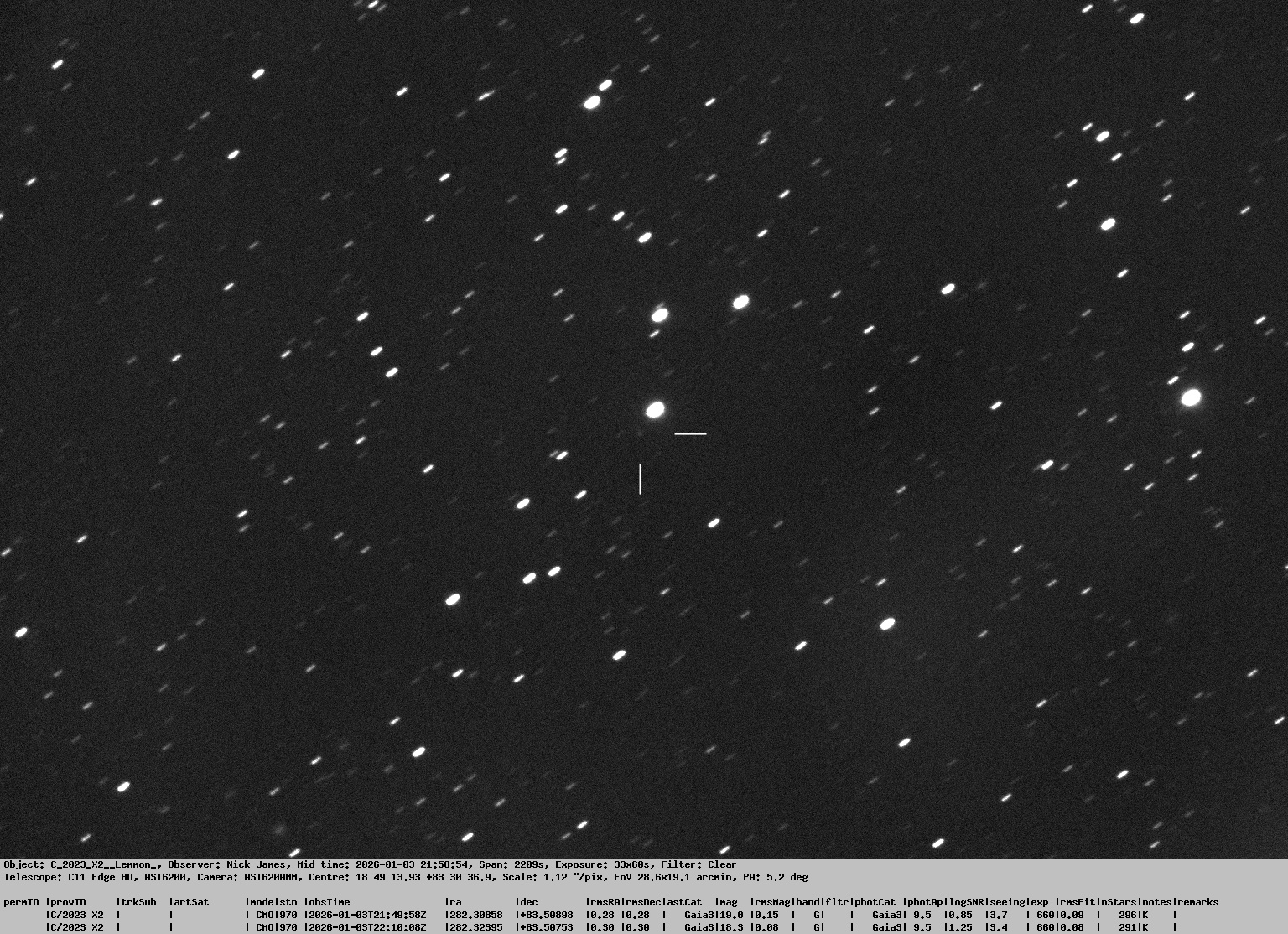 Observation by Nick James: C/2023 X2 (Lemmon), observed by Nick Jam...