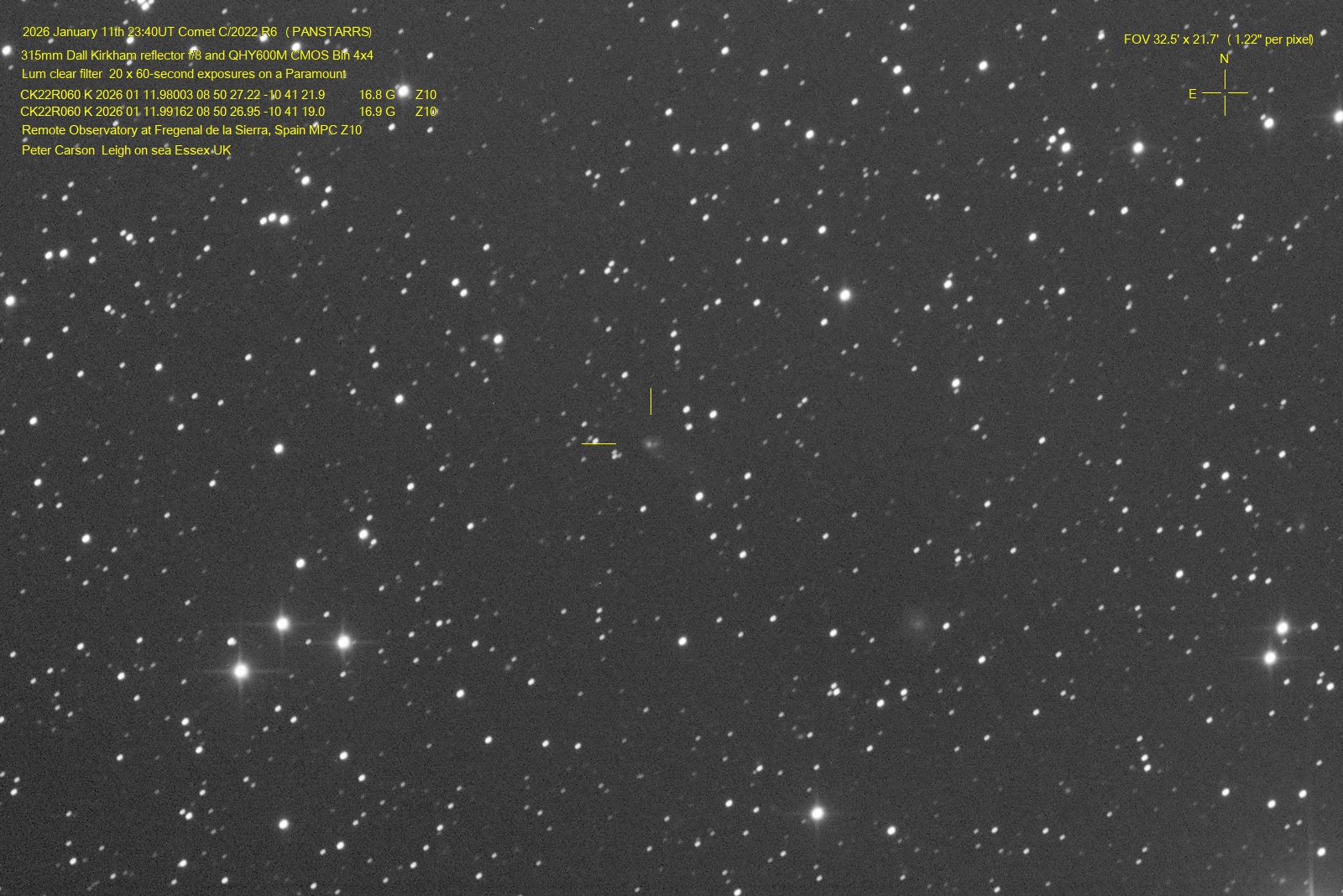 Observation by Peter Carson: C/2022 R6 (PANSTARRS), observed by Peter...