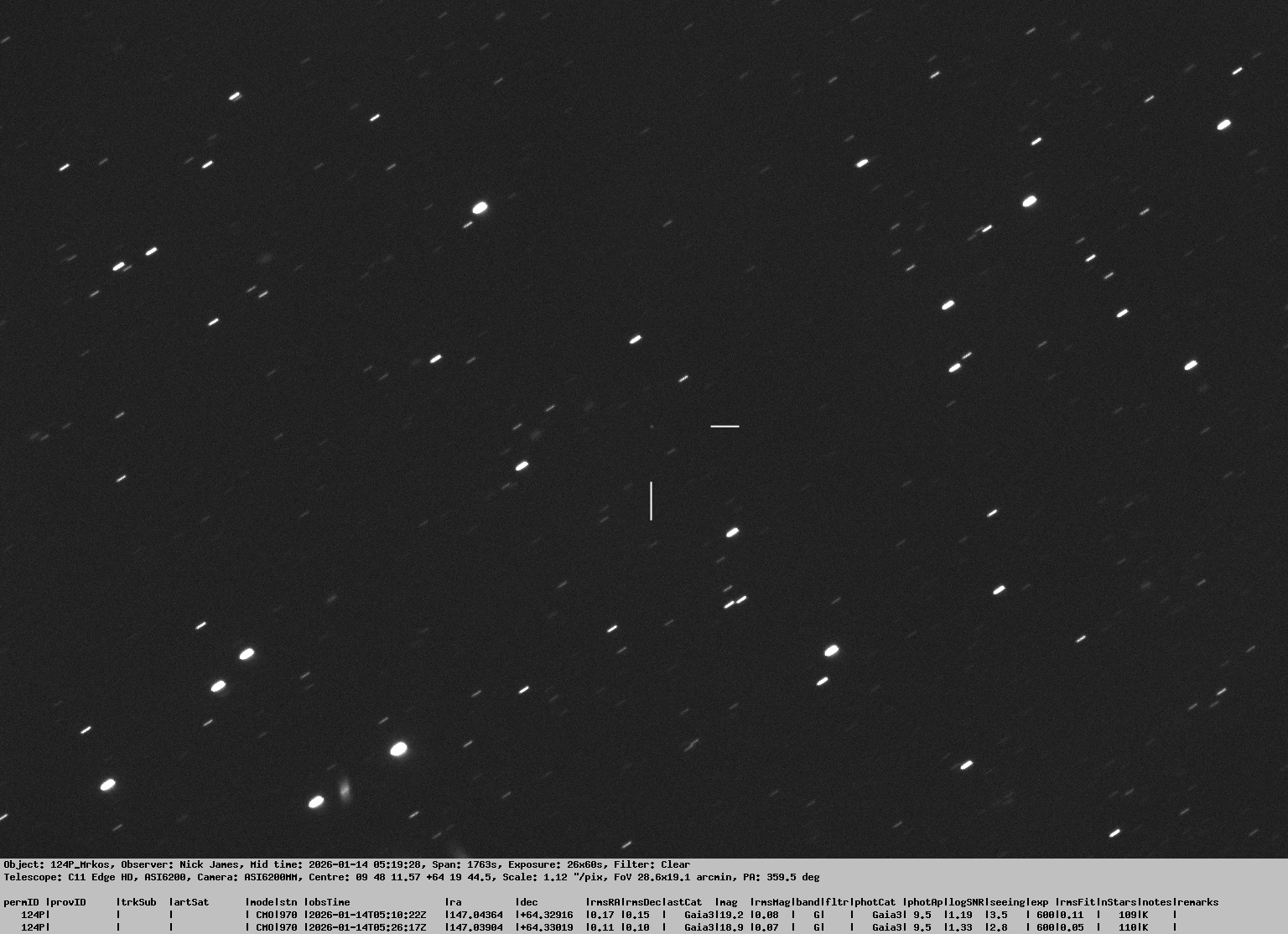 Observation by Nick James: 124P Mrkos, observed by Nick James