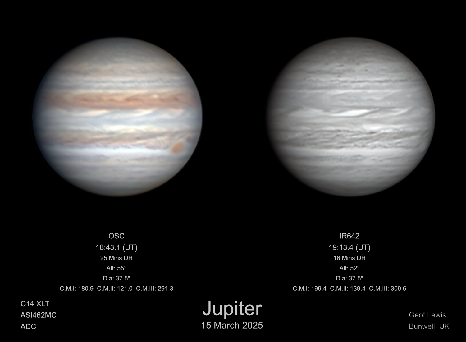 Observation by Geof Lewis: Jupiter (OSC & IR) - 15 March 2025