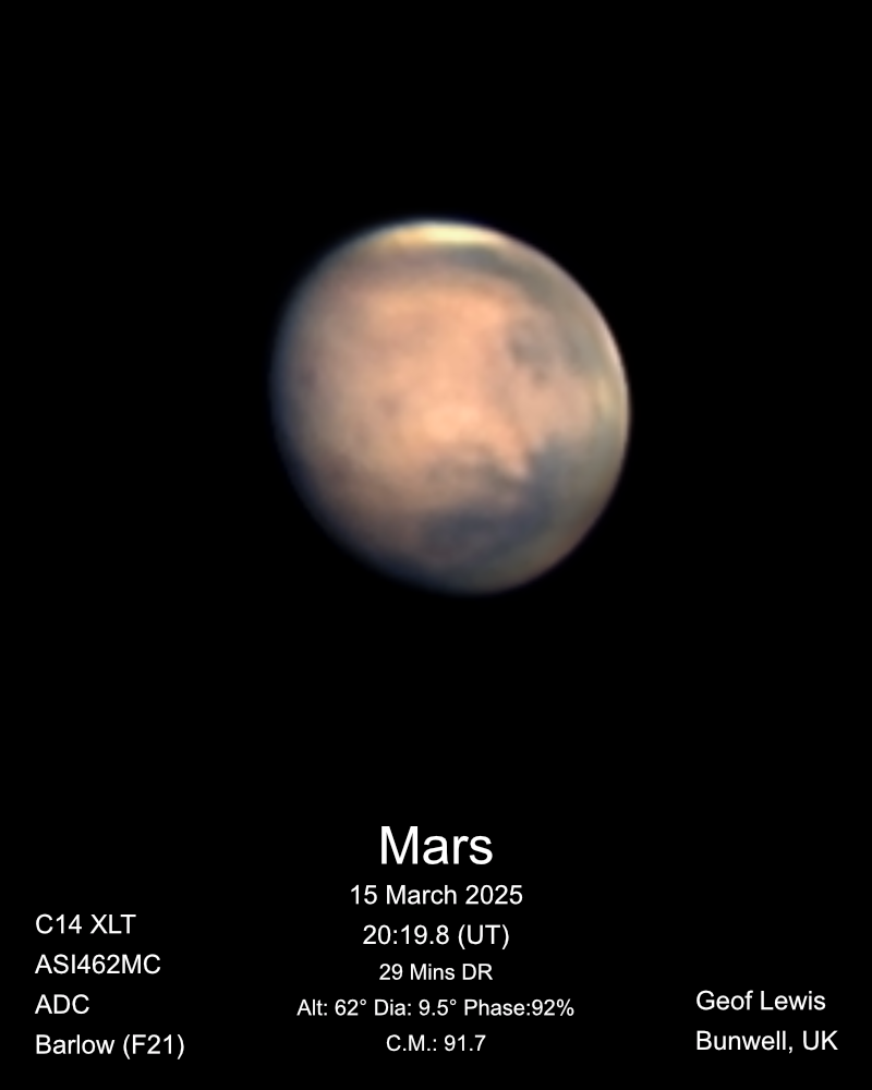 Observation by Geof Lewis: Mars - 15 March 2025
