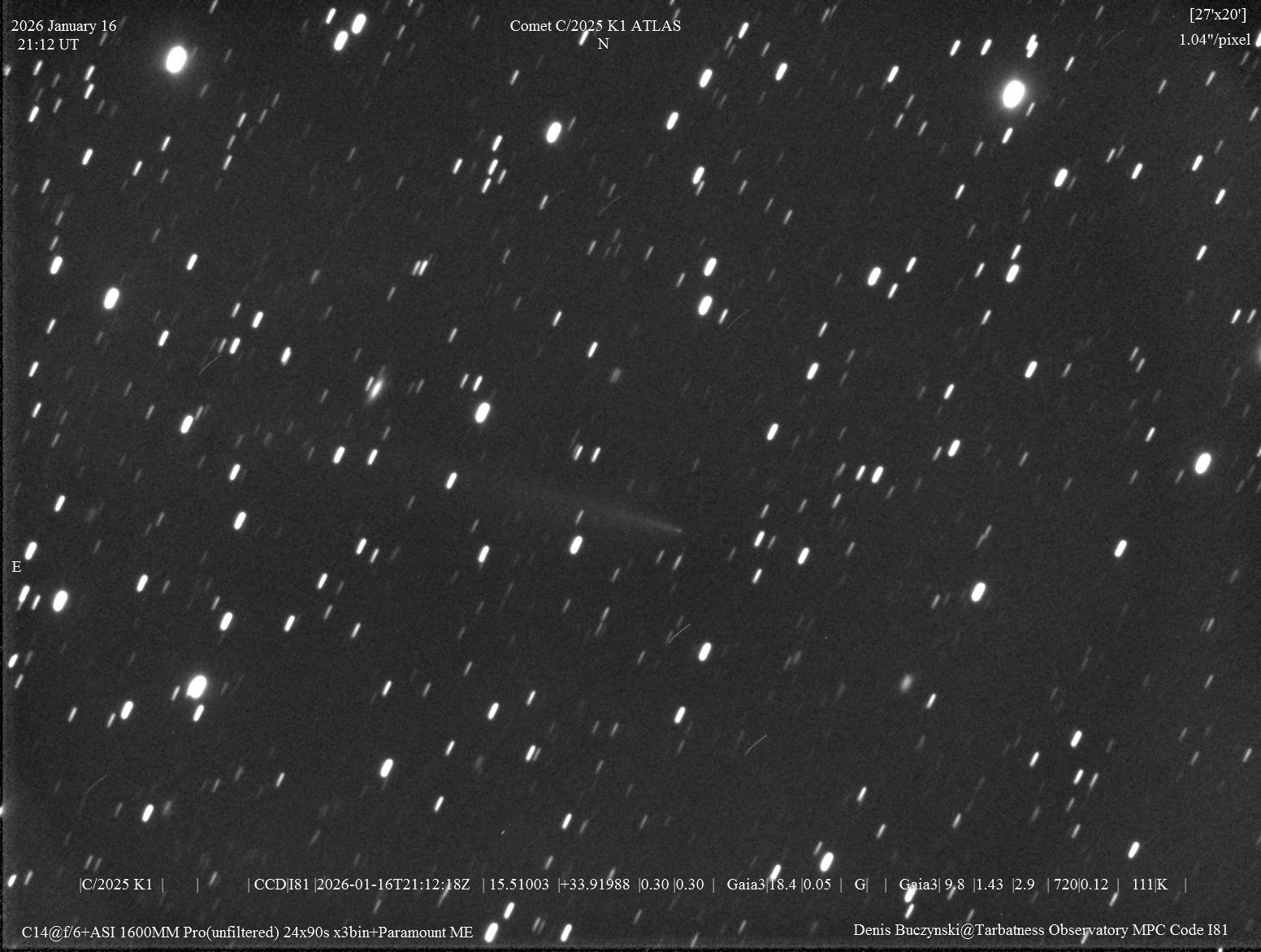 Observation by Denis Buczynski: C/2025 K1, observed by Denis Buczynski