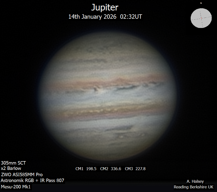 Observation by Alun Halsey: Jupiter 14th January 2026