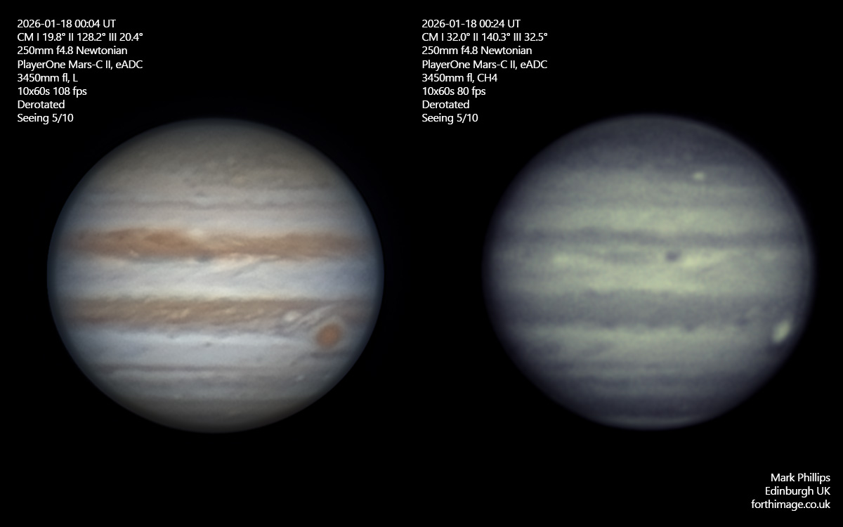 Observation by Mark Phillips: Jupiter 2026-01-18 L and CH4