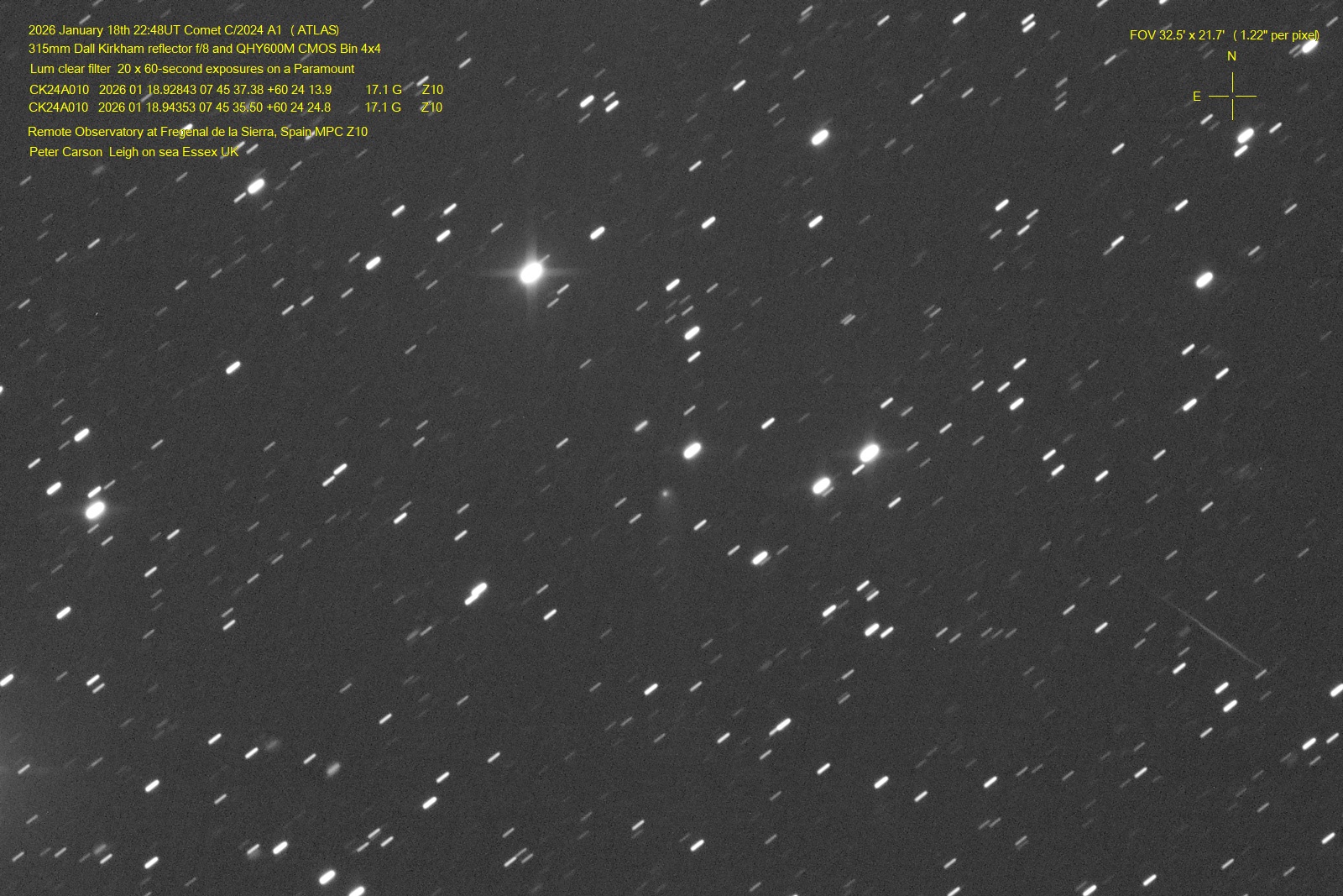 Observation by Peter Carson: C/2024 A1 (ATLAS), observed by Peter Car...