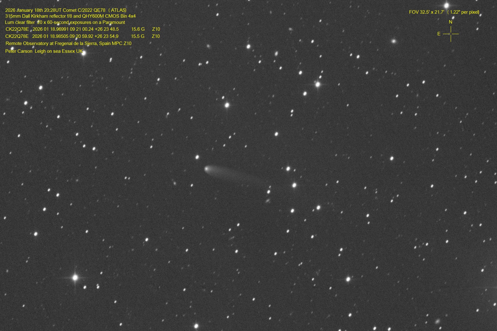 Observation by Peter Carson: C/2022 QE78 (ATLAS), observed by Peter C...