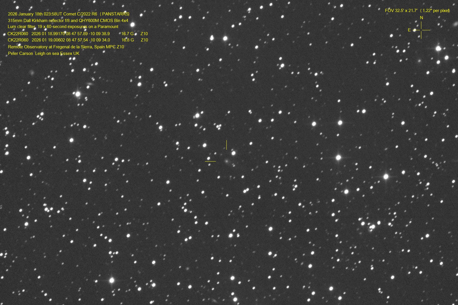 Observation by Peter Carson: C/2022 R6 (PANSTARRS), observed by Peter...