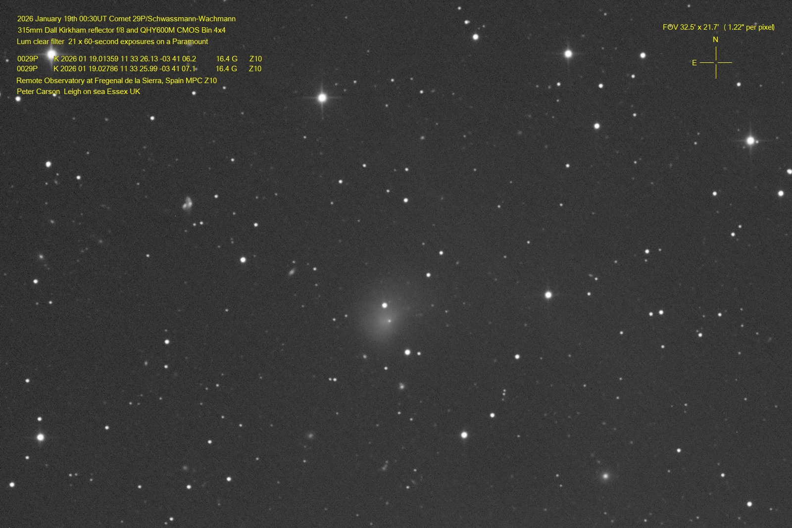 Observation by Peter Carson: 29P Schwassmann-Wachmann, observed by Pe...