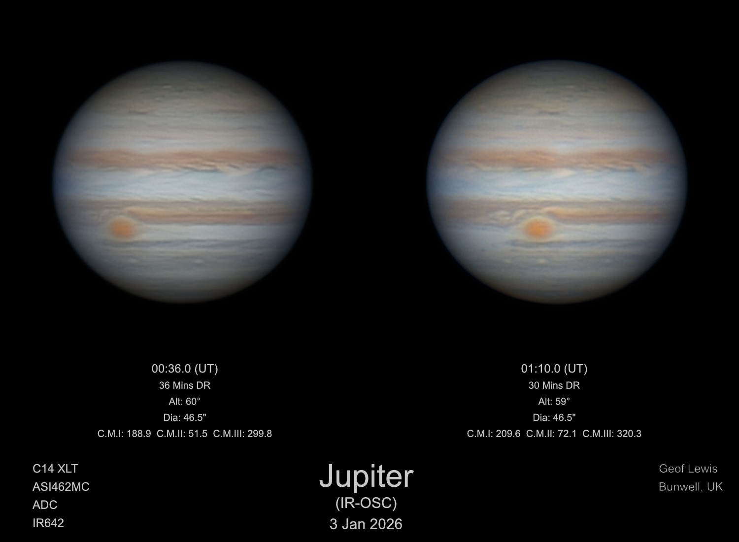 Observation by Geof Lewis: Jupiter (IR-OSC) - 3 Jan 2026