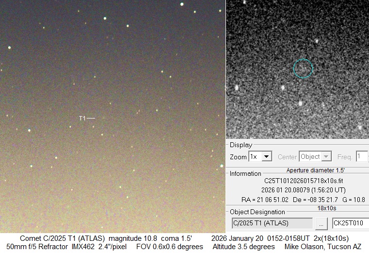 Observation by Mike Olason: C/2025 T1, observed by Mike Olason
