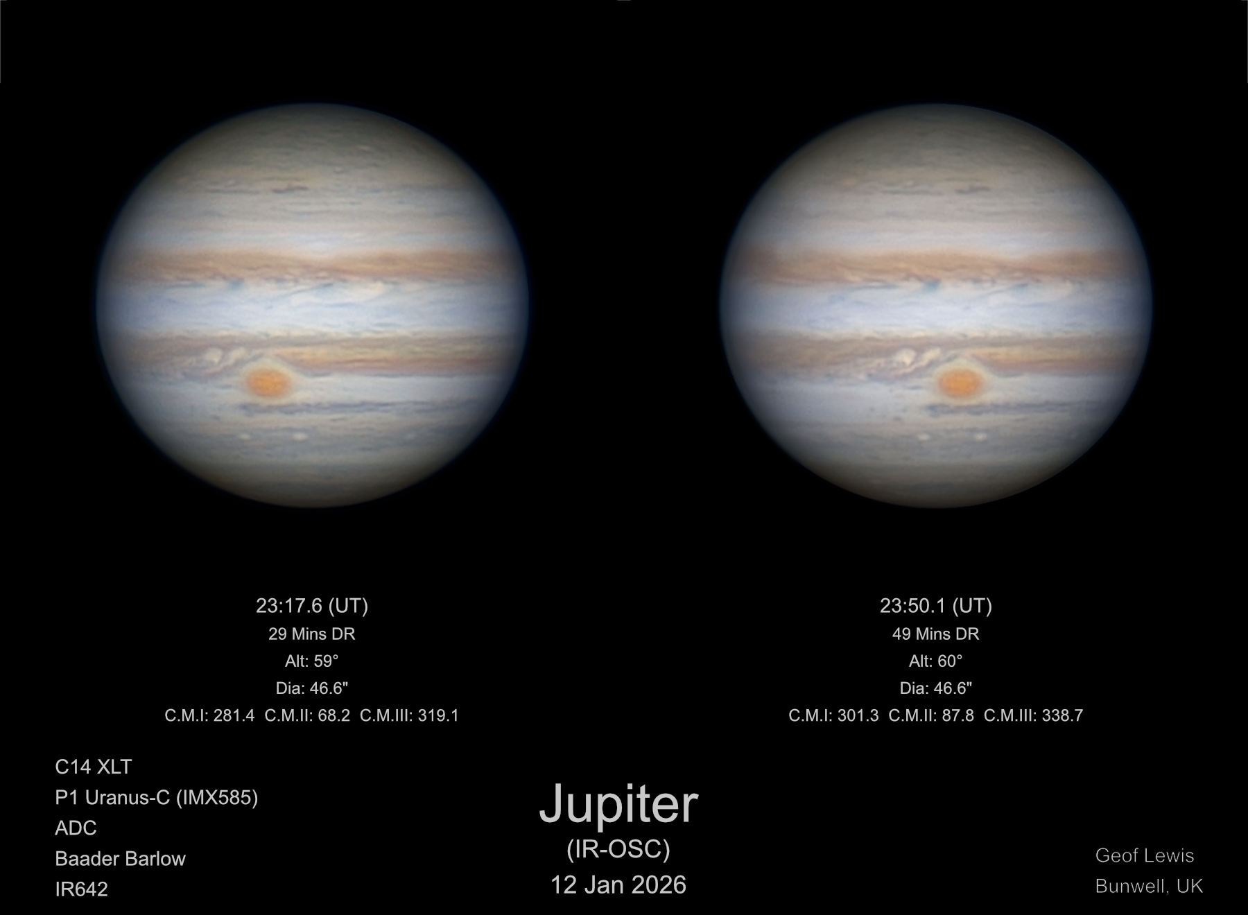 Observation by Geof Lewis: Jupiter (IR-OSC) - 12 Jan 2026