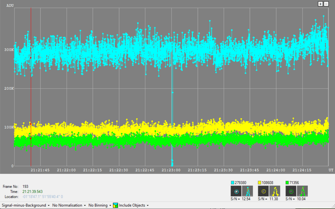 Observation by Tim Haymes: Small asteroid occults 9th mag star.