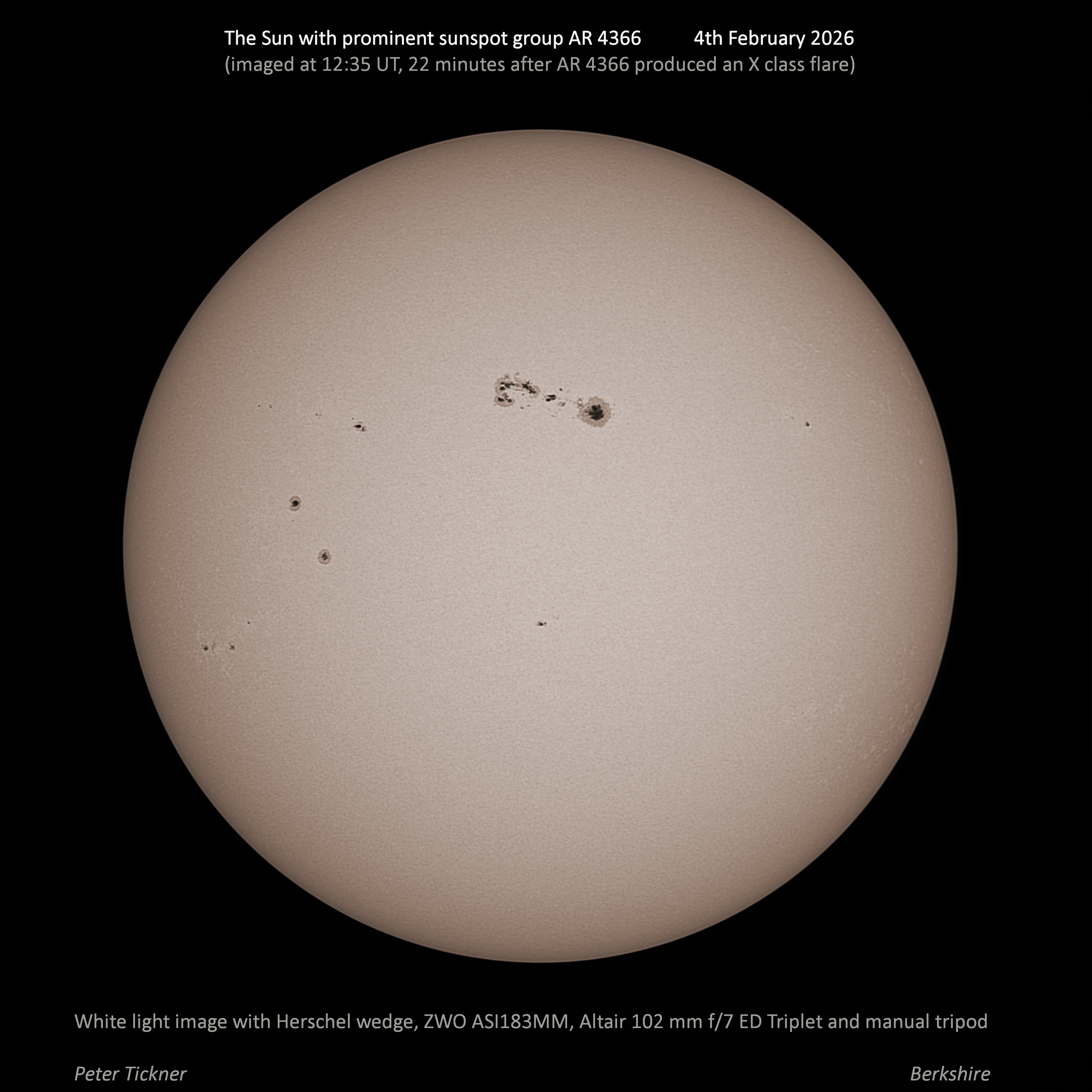 Observation by Peter Tickner: Sun and AR 4366 4th February