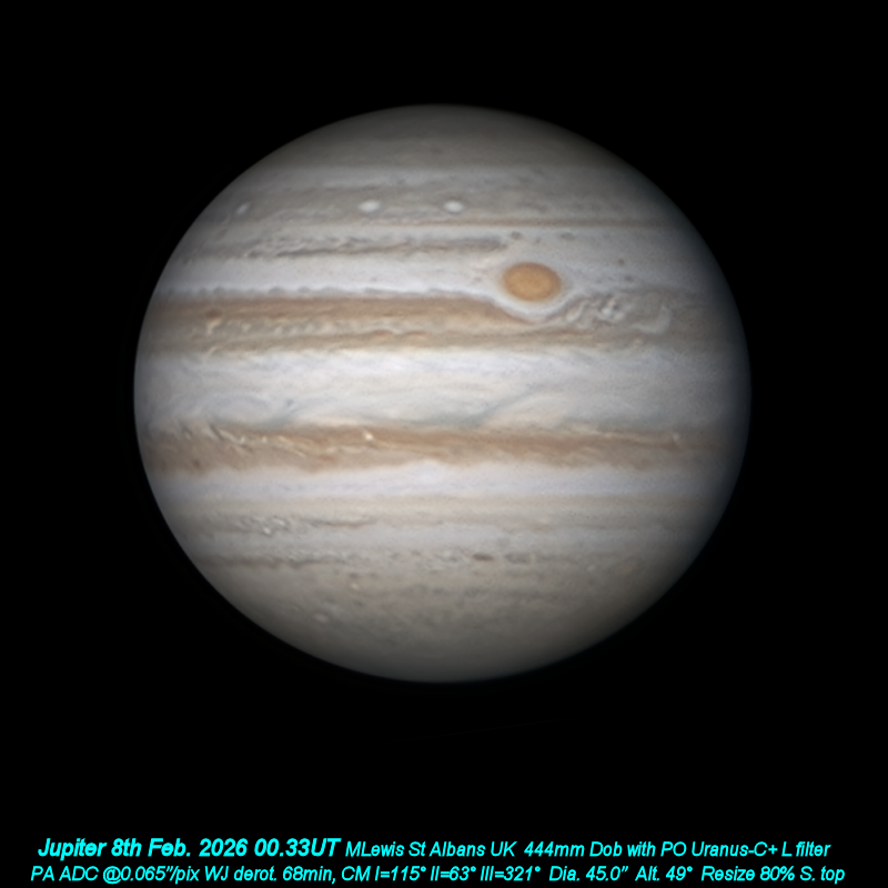 Observation by Martin Lewis: Jupiter OSC 8th Feb 2026
