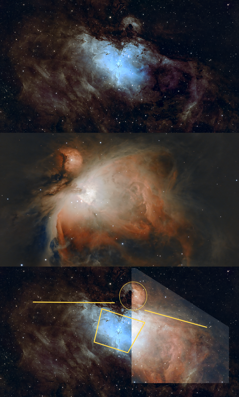 The Orion Nebula M42, the Eagle Nebula (NGC 6611), and the Seagull Nebula (Sh2-292)... these nebulae share a fascinating geometry: in each, one can observe a structure composed of a sphere and a fan-like tail branching out from it. This distinctive shape is determined by a phenomenon known as the Strömgren Sphere.