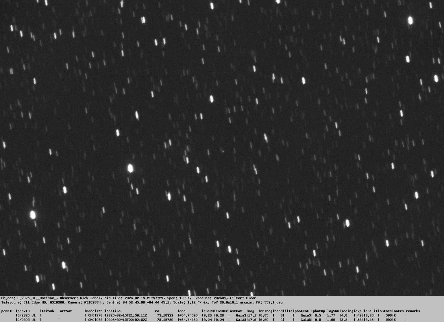 Observation by Nick James: C/2025 J1, observed by Nick James