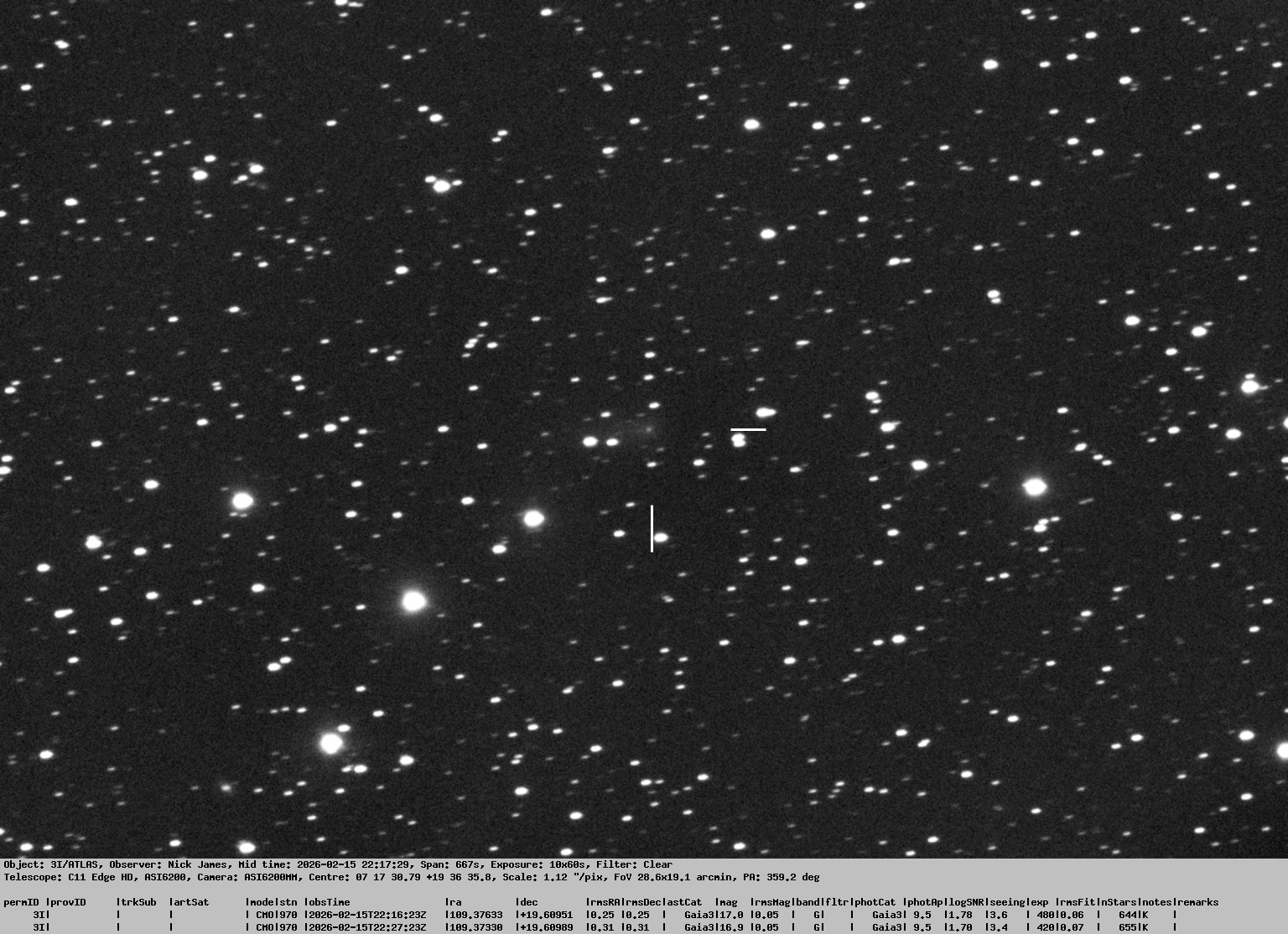 Observation by Nick James: 0003I, observed by Nick James