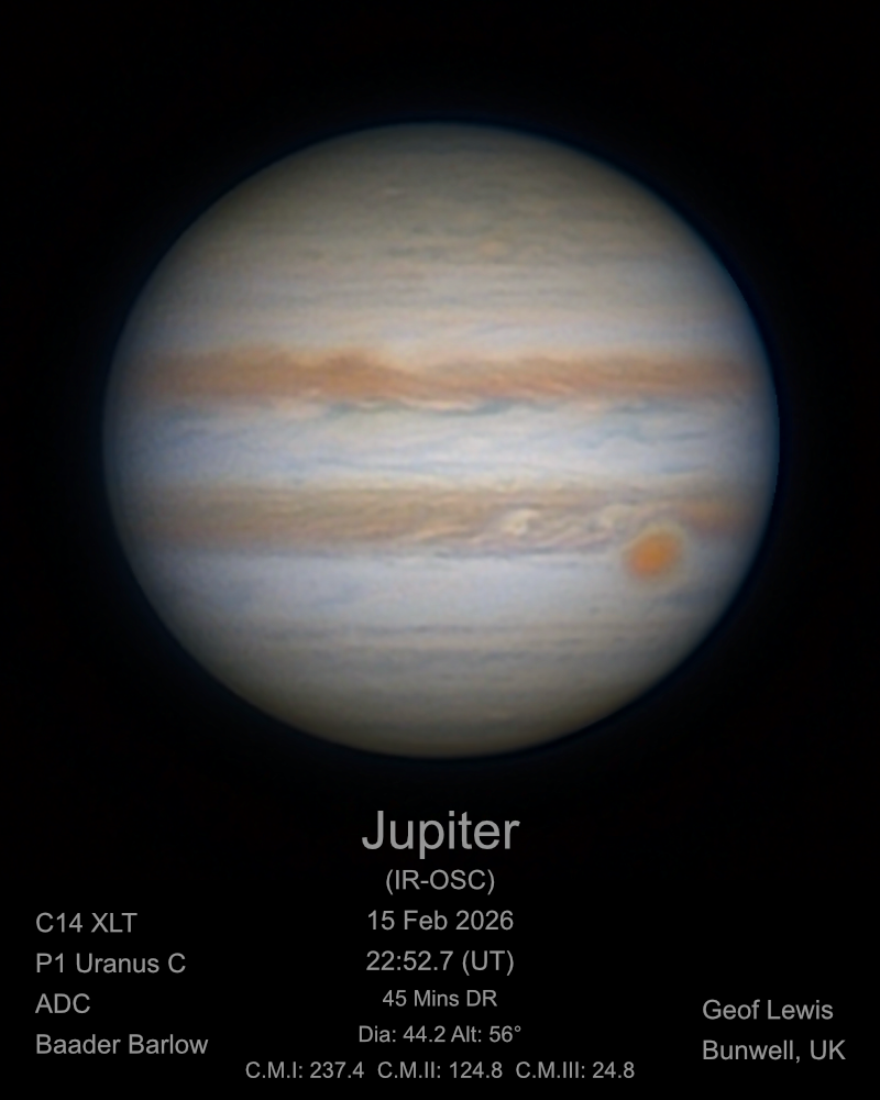 Observation by Geof Lewis: Jupiter (IR-OSC) - 15 Feb 2026