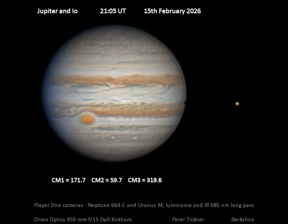 Observation by Peter Tickner: Jupiter, pinch of shadow and Io 15th Feb...
