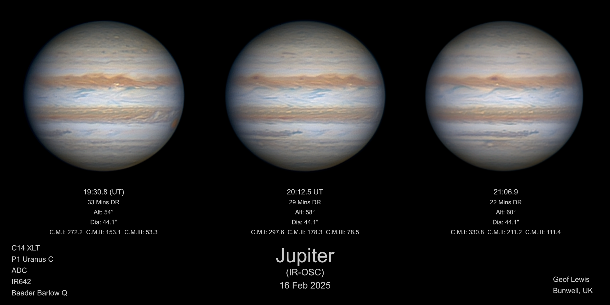 Observation by Geof Lewis: Jupiter (IR-OSC)(x3) - 16 Feb 2026