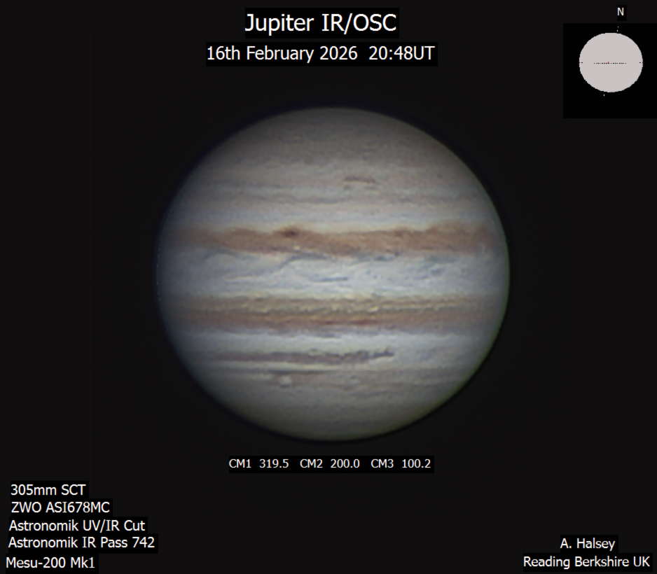 Observation by Alun Halsey: Jupiter IR-OSC 16th Feb 2026