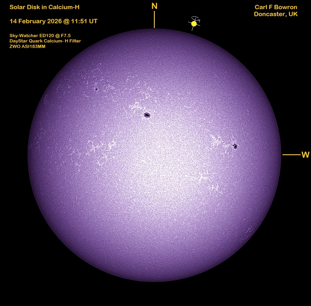 Observation by Carl Bowron: SUN 20260214 1151UT DISK CaH CFB