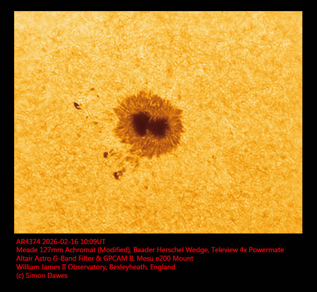 Observation by Simon Dawes: SFD AR4374 2026-02-16 1009UT