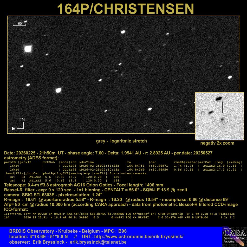 Observation by Erik Bryssinck: 164P Christensen, observed by Erik Bryss...