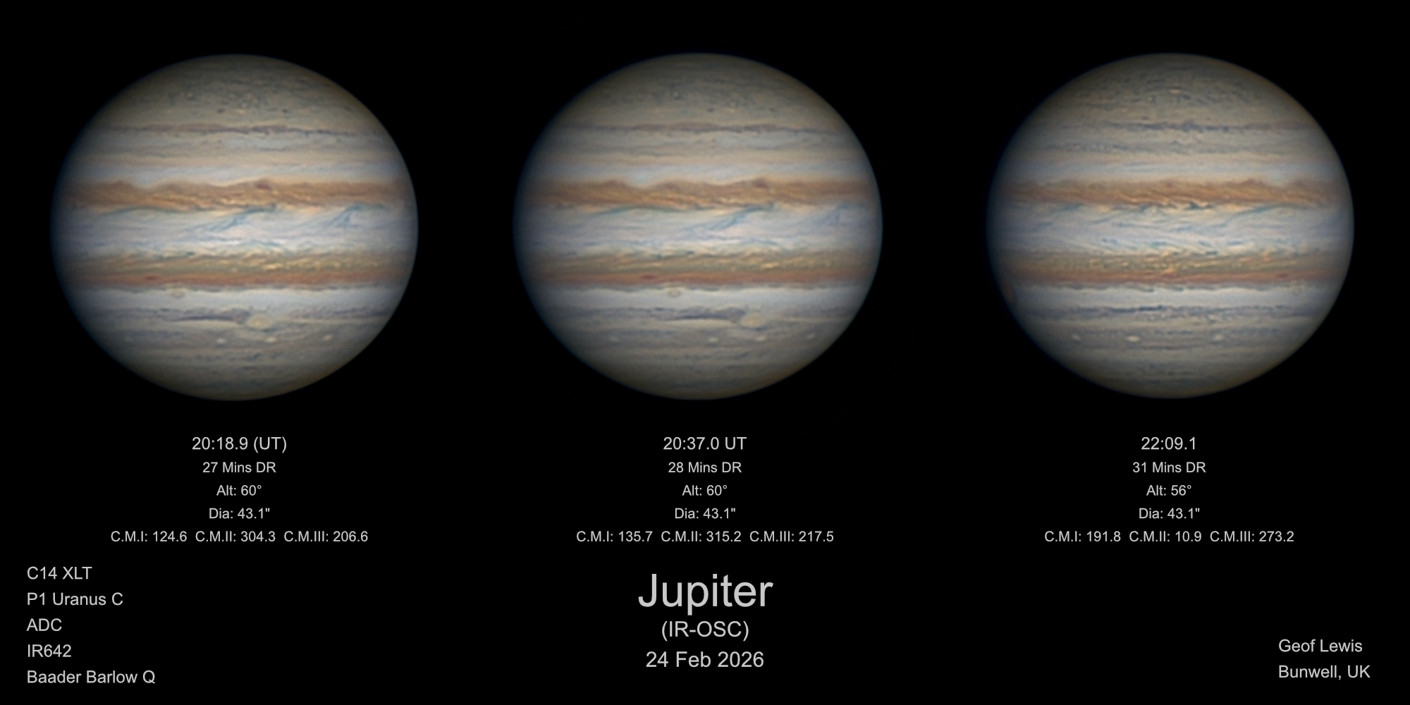 Observation by Geof Lewis: Jupiter (IR-OSC)(x3) - 24 Feb 2026