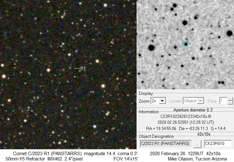 Observation by Mike Olason: C/2023 R1 (PANSTARRS), observed by Mike ...