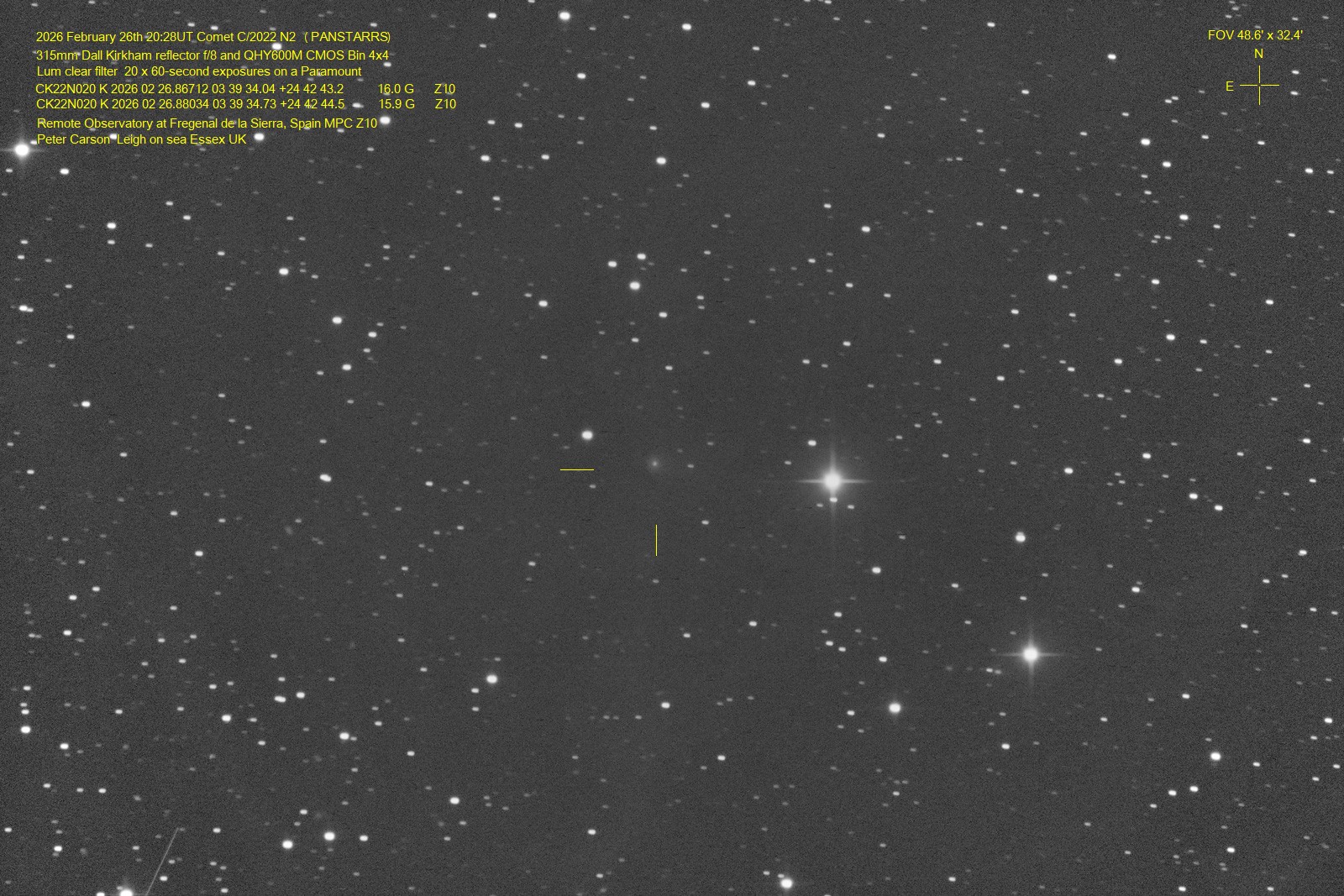 Observation by Peter Carson: C/2022 N2 (PANSTARRS), observed by Peter...