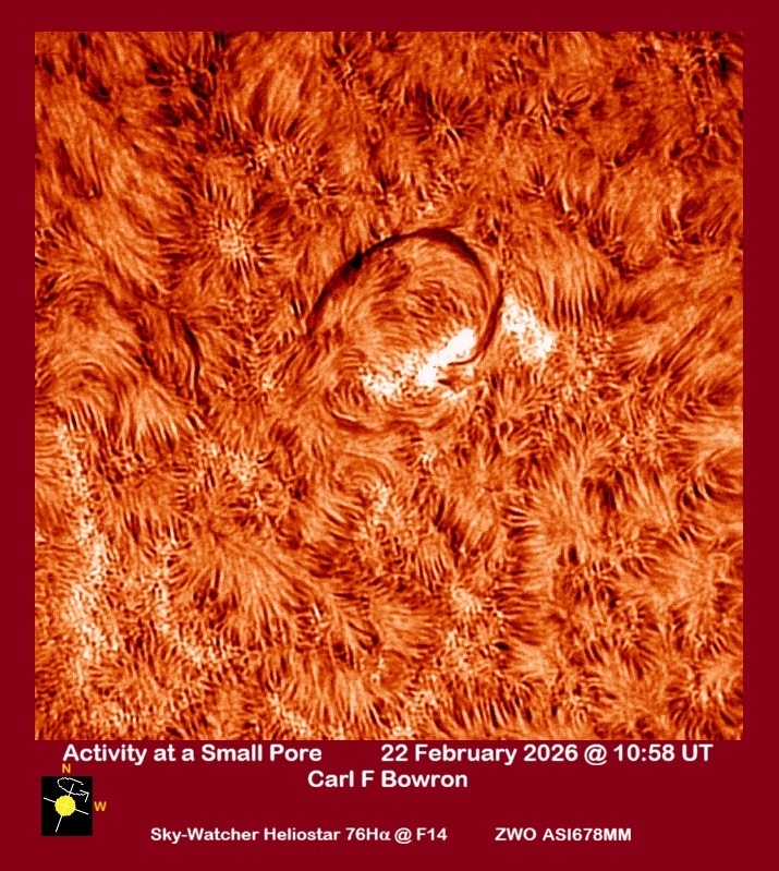 Observation by Carl Bowron: SUN 20260222 1058UT AR HALPHA CFB