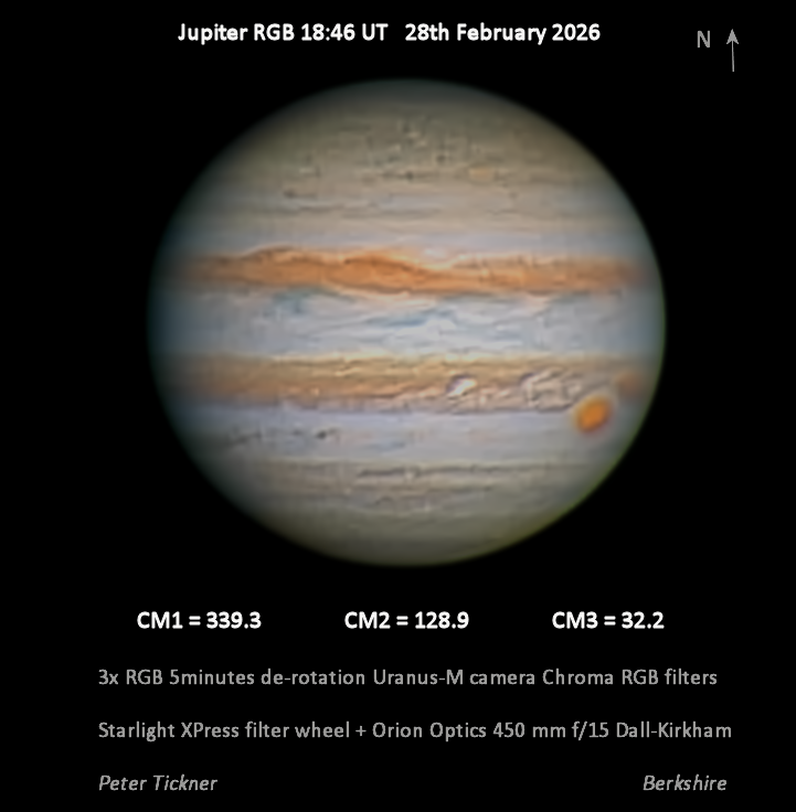 Observation by Peter Tickner: Jupiter RGB 28th February