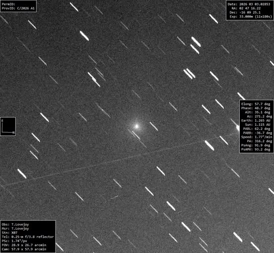 Observation by tlovejoy: C/2026 A1 (MAPS) March 3.03 UT, 2026. As...