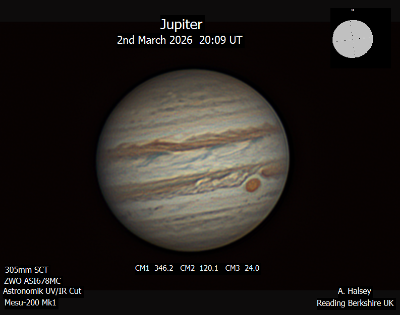 Observation by Alun Halsey: Jupiter 2nd March 2026