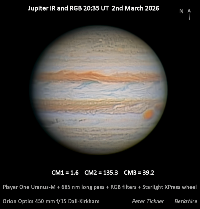 Observation by Peter Tickner: Jupiter 2nd March IR RGB