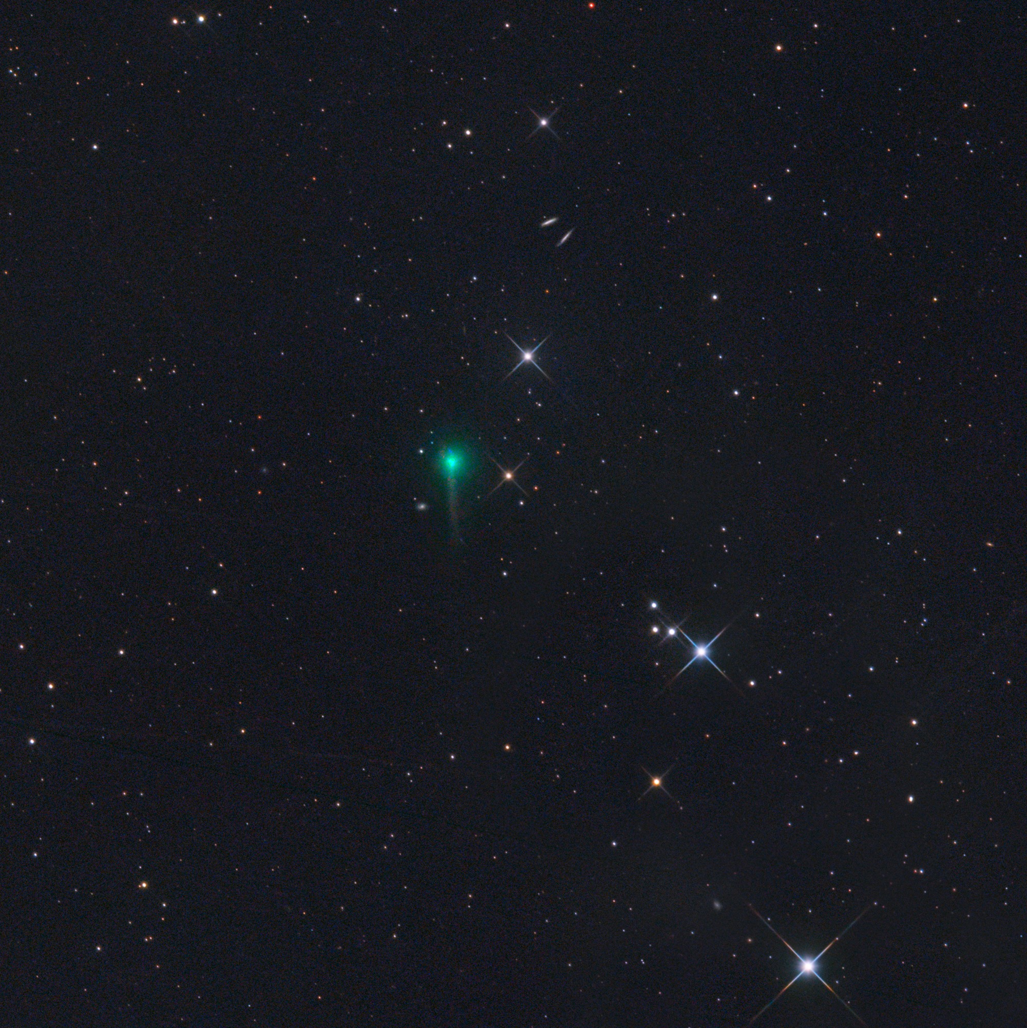 Date: 06 03 2026 UT 18:36 Location: Farm Tivoli, Namibia Telescope: ASA Astrograph 12" f3.6 Camera: ZWO ASI 6200 MM Pro Mount: ASA DDM 85 Exp.Time: LRGB 20/9/9/9min. Gerald Rhemann and Michael Jäger Center (RA, Dec): (39.991, -14.282) Center (RA, hms): 02h 39m 57.918s Center (Dec, dms): -14° 16' 55.023" Size: 53.8 x 53.8 arcmin Radius: 0.634 deg Pixel scale: 1.61 arcsec/pixel "Orientation", may be incorrect, use at your own risk: Up is 88.6 degrees E of N