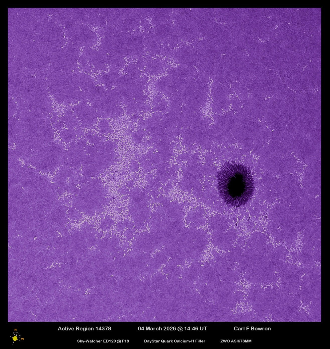 Observation by Carl Bowron: SUN 20260304 1446UT AR14378 CAH CFB