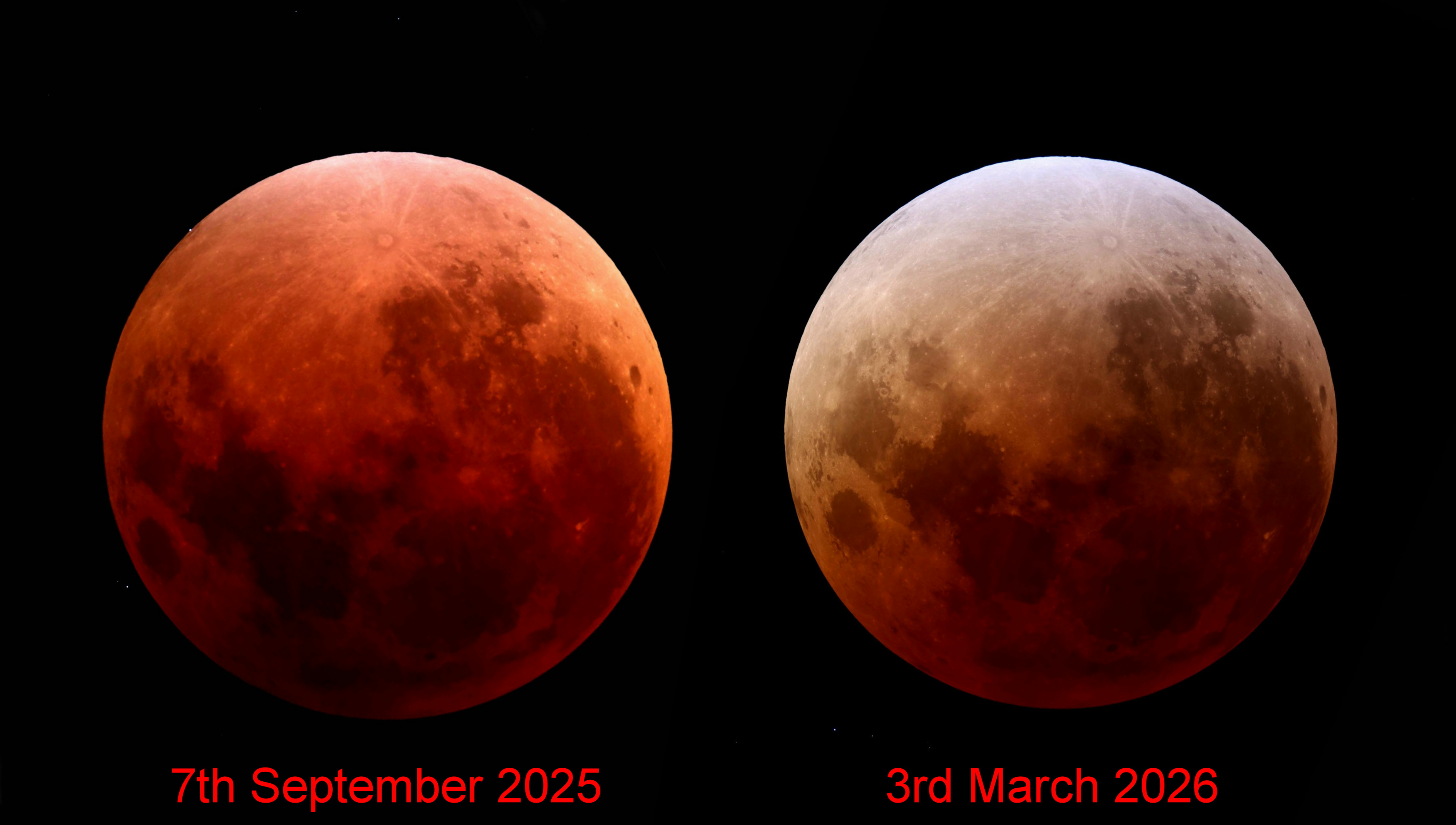 Comparison 7 September 2025 and 3rd March 2026 Lunar Eclipses