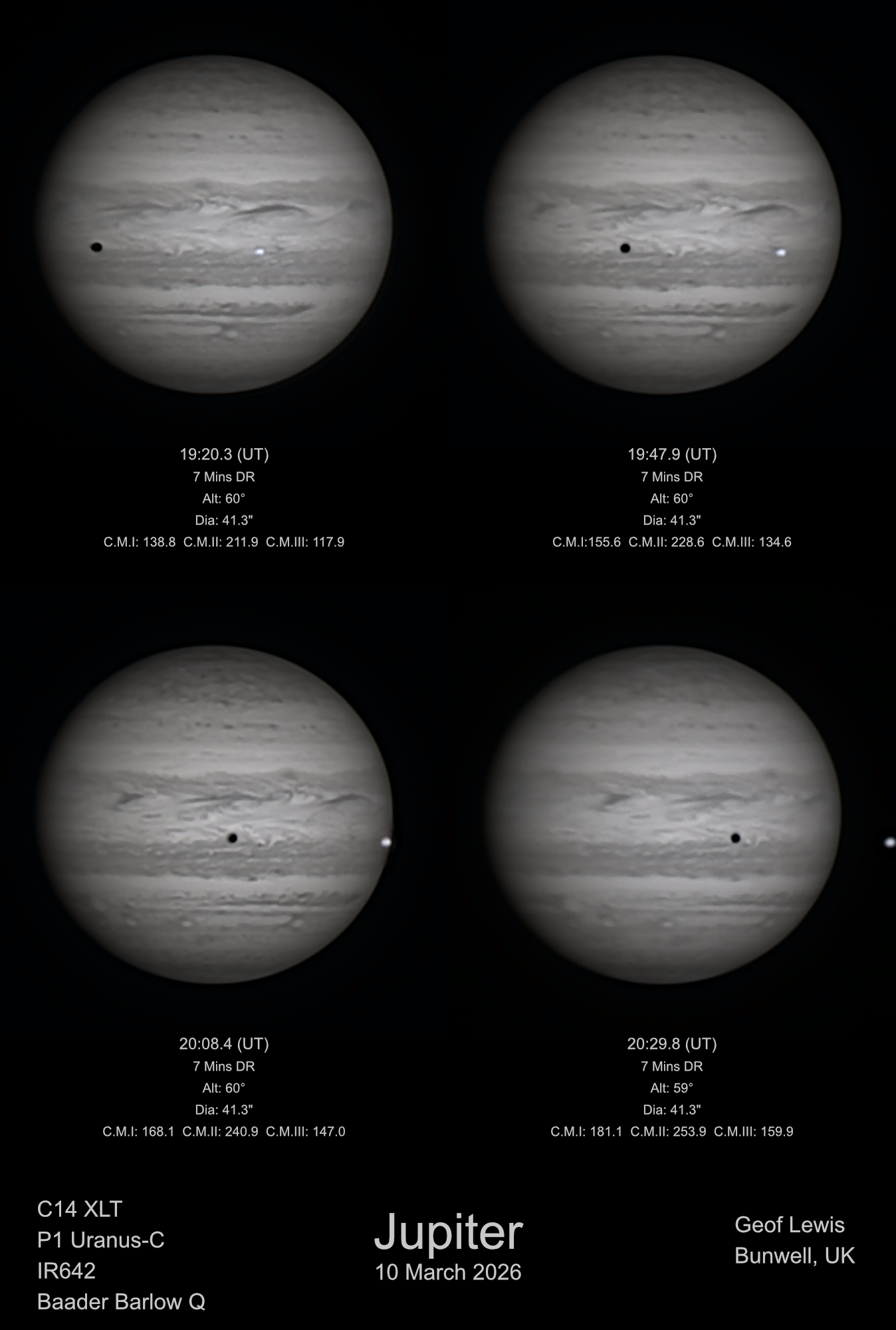 Observation by Geof Lewis: Jupiter (IRx4) - 10 March 2026