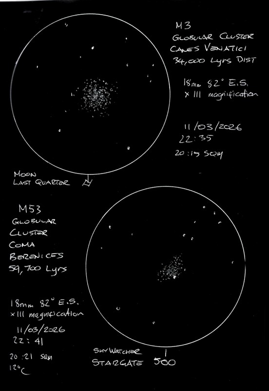 Observation by Martin Foad: M3 and M53 Globular Clusters