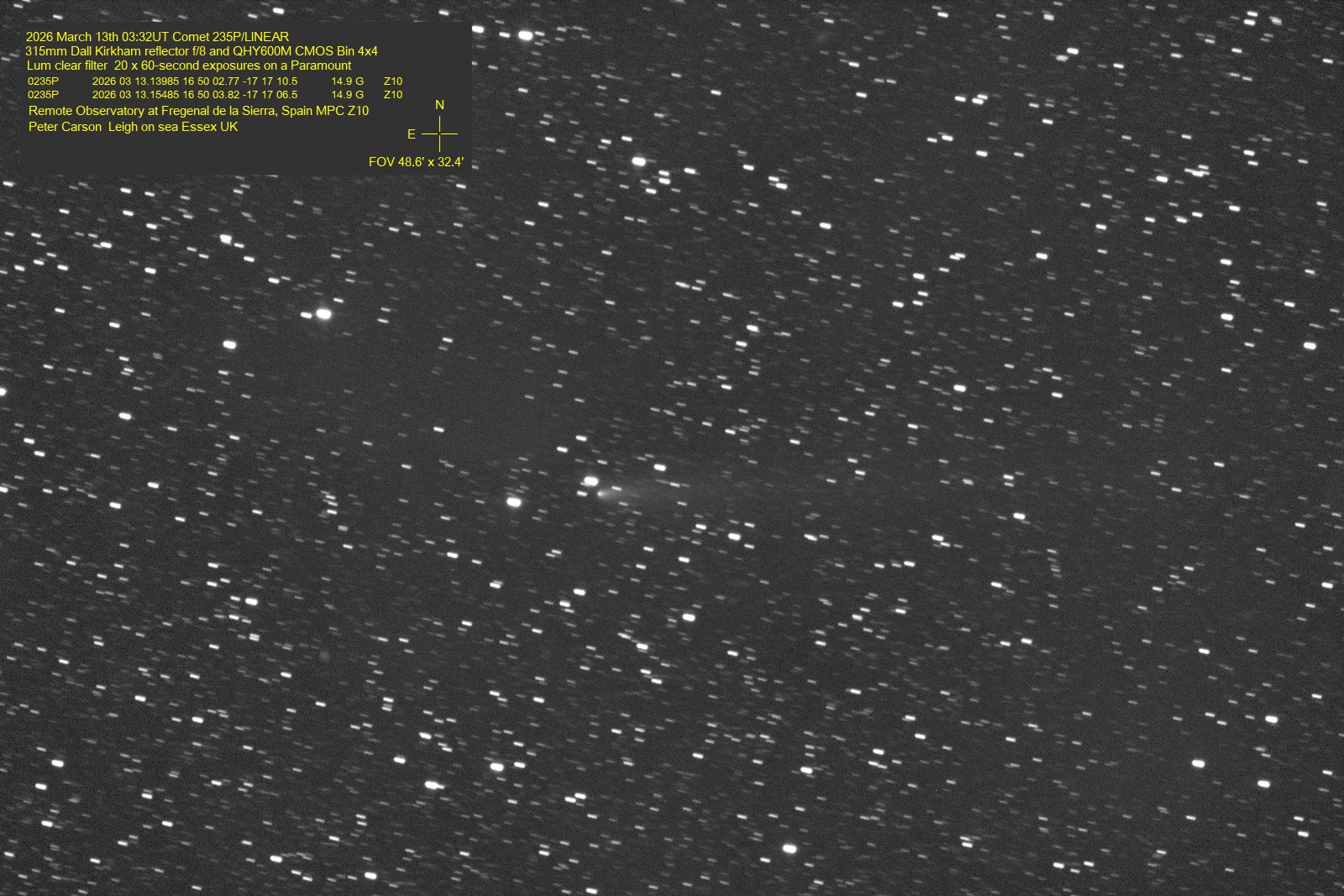 Observation by Peter Carson: 235P LINEAR, observed by Peter Carson