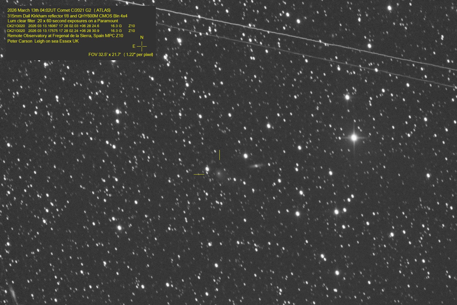 Observation by Peter Carson: C/2021 G2 (ATLAS), observed by Peter Car...