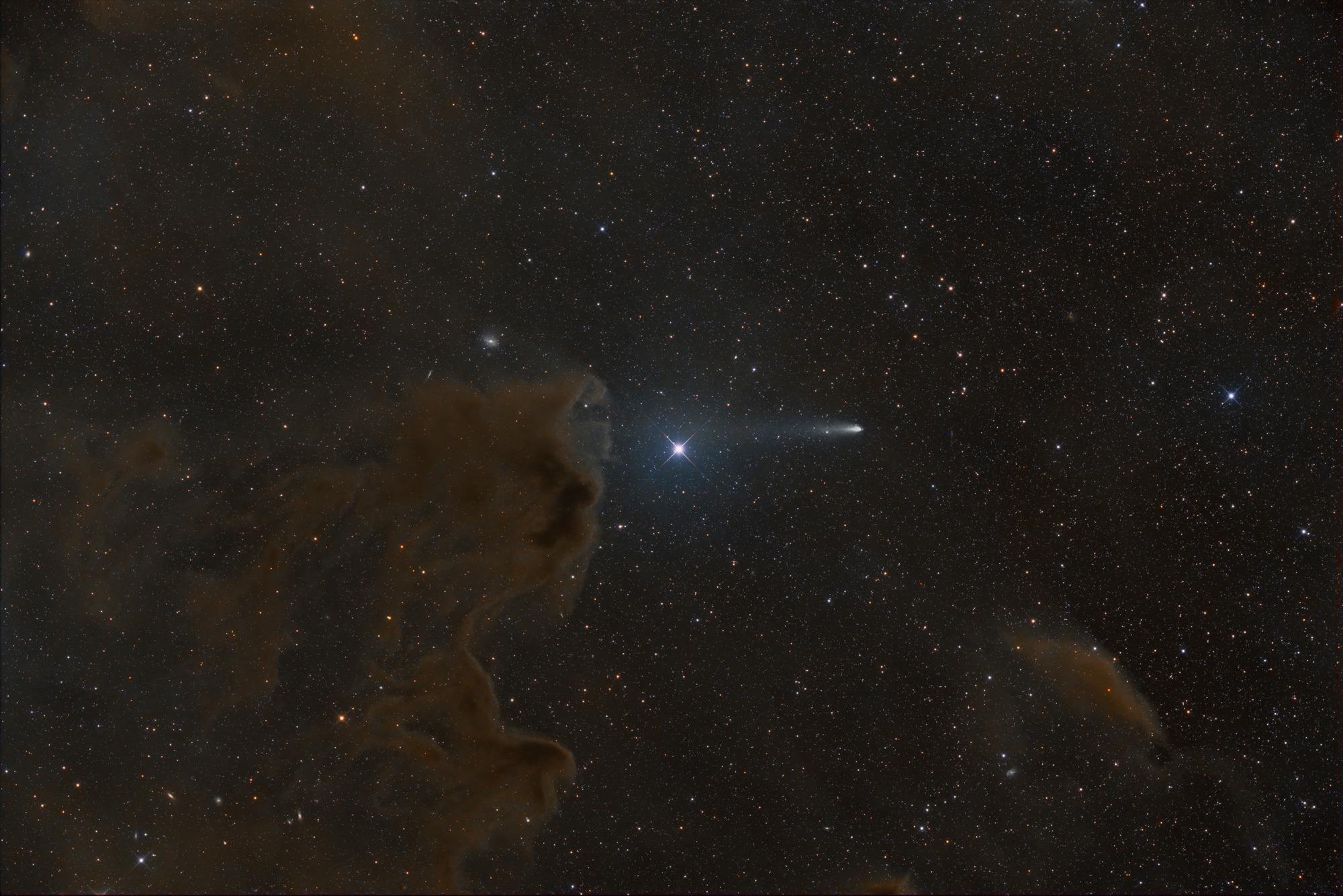 Comet 235P LINEAR Date: 19 03 2026 UT 00:11 Location: Farm Tivoli, Namibia Telescope: ASA Astrograph 12" f3.6 Camera: ZWO ASI 6200 MM Pro Mount: ASA DDM 85 Exp.Time: LRGB 24/9/9/9min. Gerald Rhemann and Michael Jäger Center (RA, Dec): (253.997, -16.807) Center (RA, hms): 16h 55m 59.366s Center (Dec, dms): -16° 48' 26.831" Size: 1.91 x 1.28 deg Radius: 1.149 deg Pixel scale: 3.44 arcsec/pixel "Orientation", may be incorrect, use at your own risk: Up is 178.3 degrees E of N