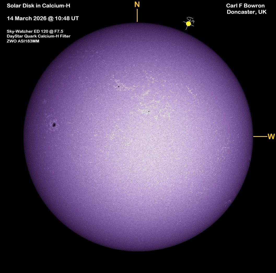 Observation by Carl Bowron: SUN 20260314 1048UT DISK CAH CFB