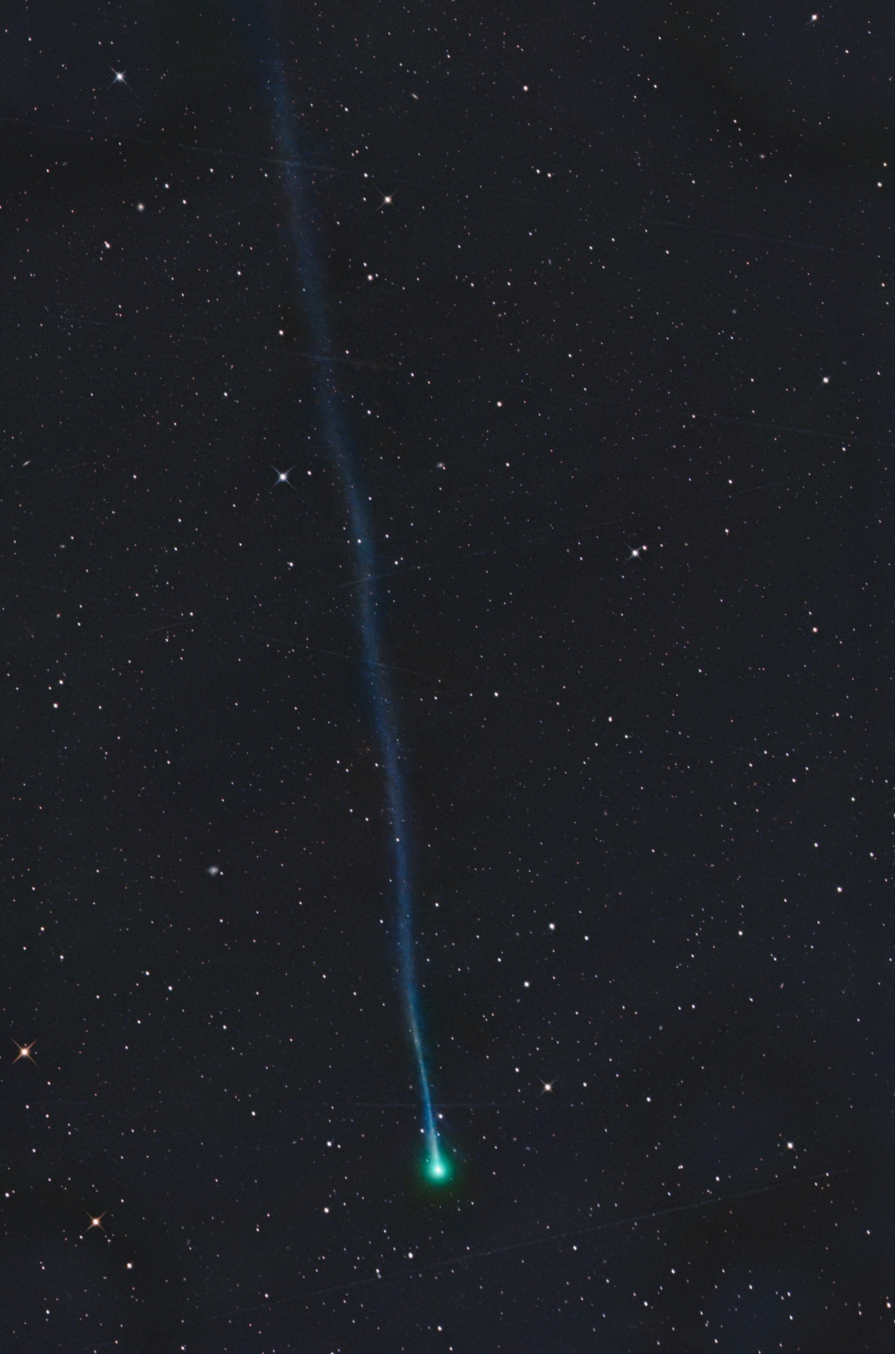 Comet C/2026 A1 MAPS Date: 21 03 2026 UT 18:04 Location: Farm Tivoli, Namibia Telescope: ASA Astrograph 12" f3.6 Camera: ZWO ASI 6200 MM Pro Mount: ASA DDM 85 Exp.Time: LRGB 13/7.5/7.5/7.5 min. Gerald Rhemann and Michael Jäger Center (RA, Dec): (32.649, -5.898) Center (RA, hms): 02h 10m 35.657s Center (Dec, dms): -05° 53' 52.228" Size: 1.24 x 1.88 deg Radius: 1.126 deg Pixel scale: 3.44 arcsec/pixel "Orientation", may be incorrect, use at your own risk: Up is 268.6 degrees E of N
