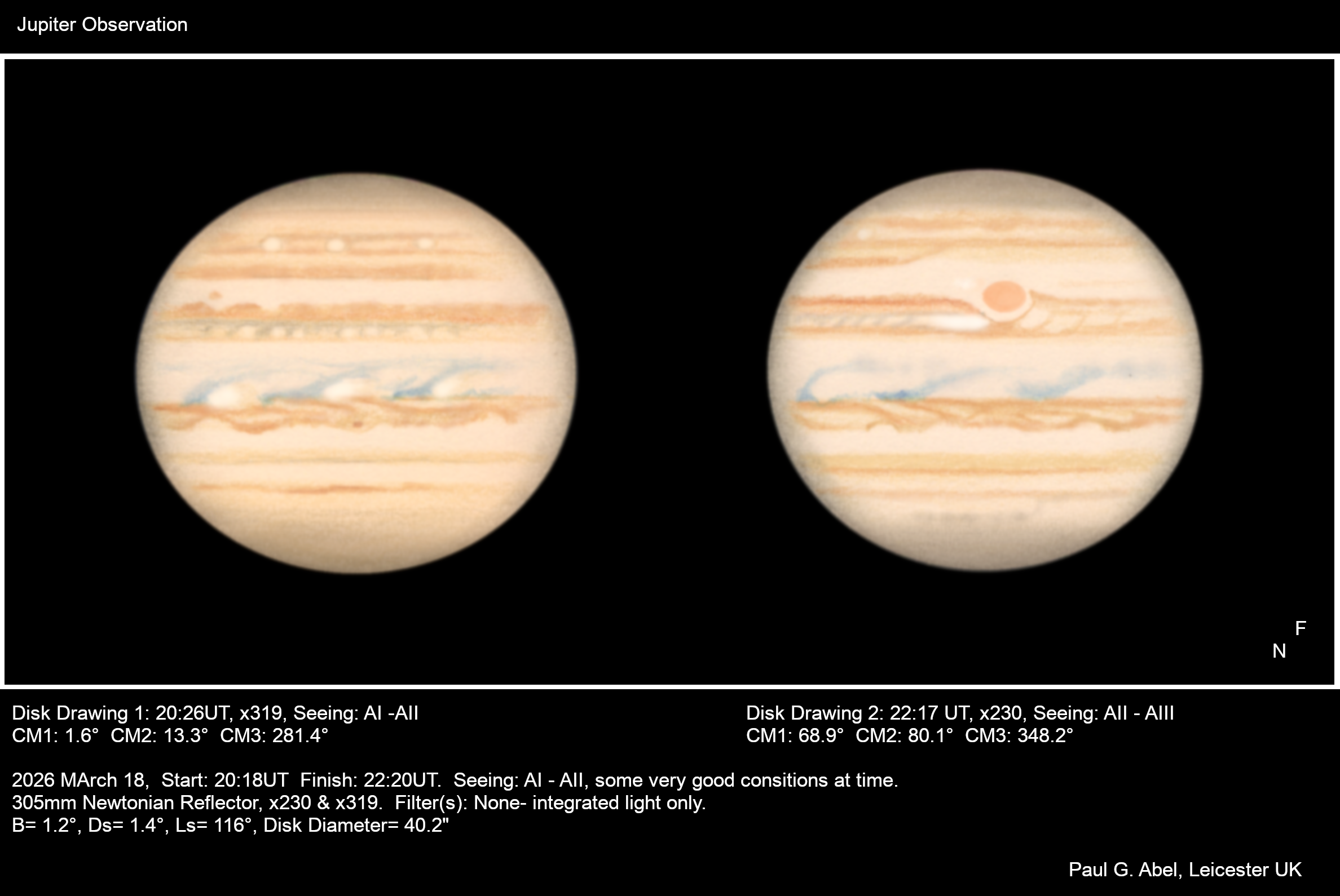 Observation by Paul G. Abel: Jupiter: 18th March