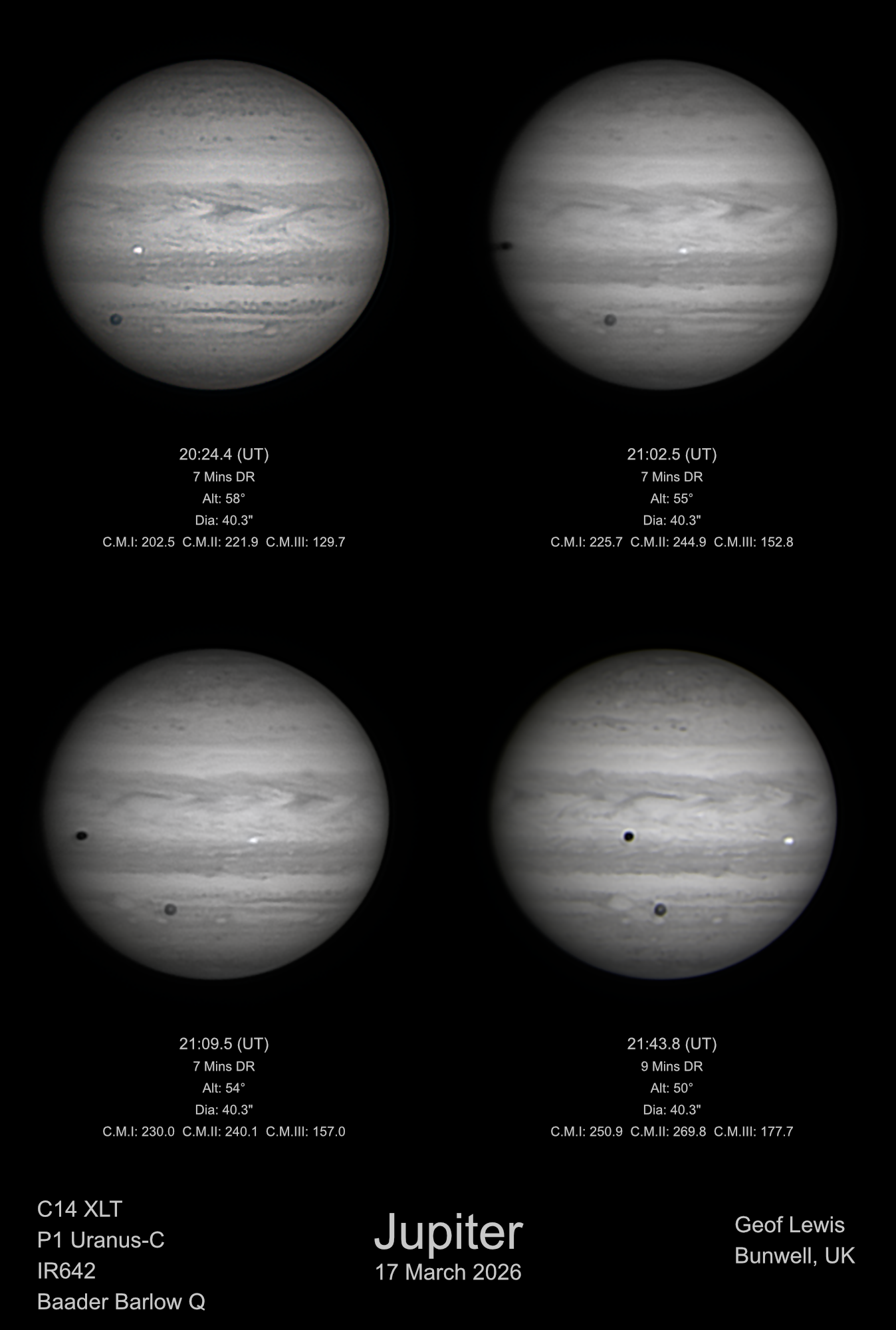 Observation by Geof Lewis: Jupiter double transit in IR - 17 March...