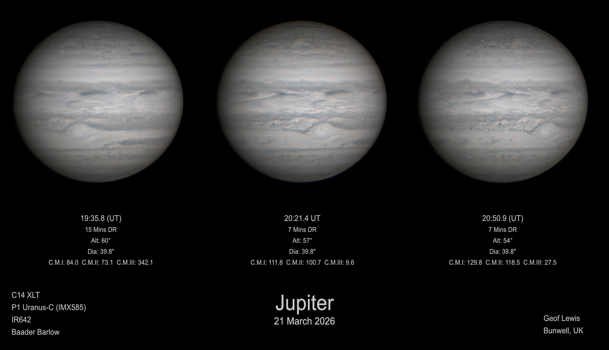 Observation by Geof Lewis: Jupiter (IRx3) - 21 March 2026