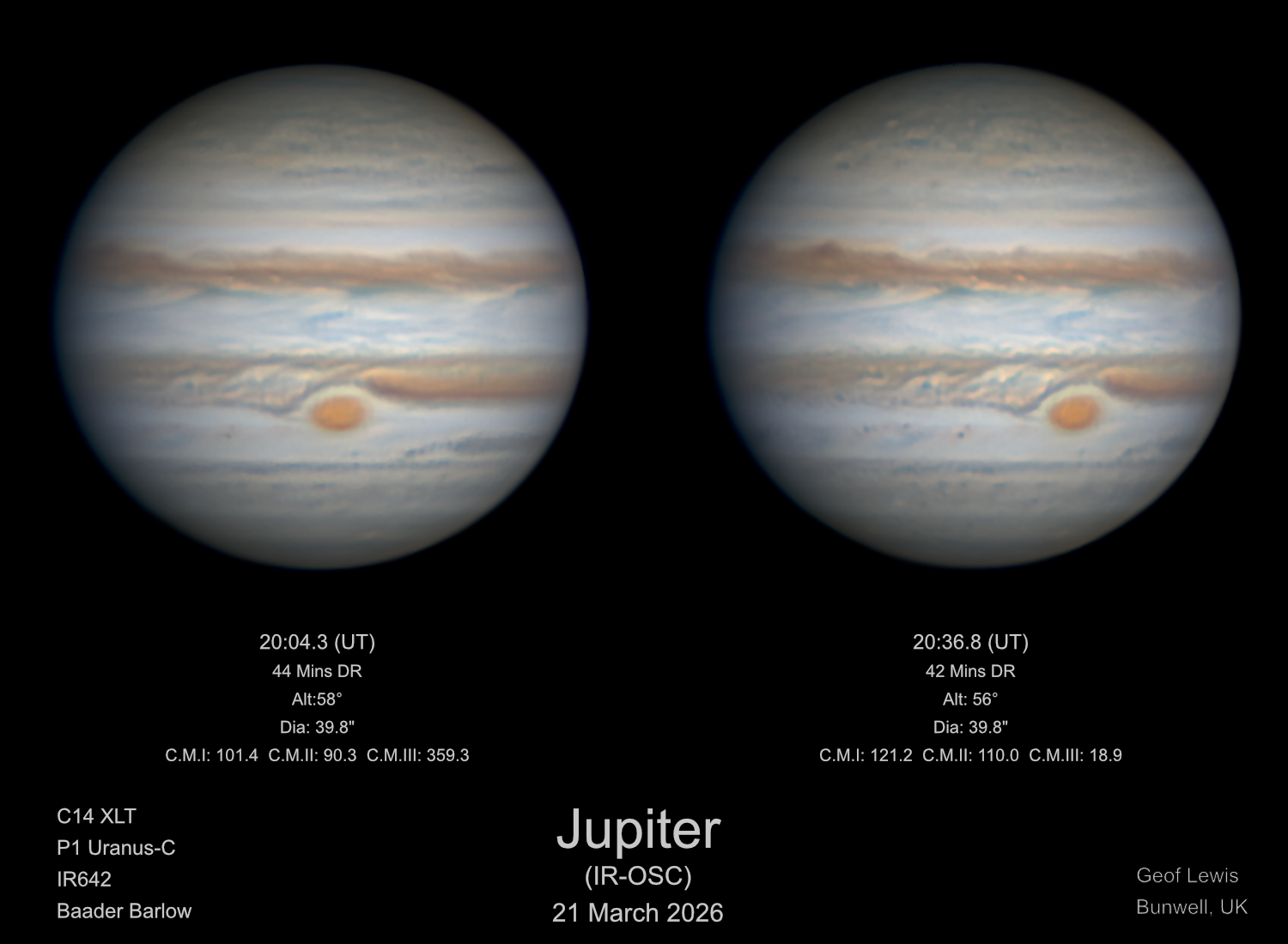 Observation by Geof Lewis: Jupiter (IR-OSC)(x2) - 21 March 2026